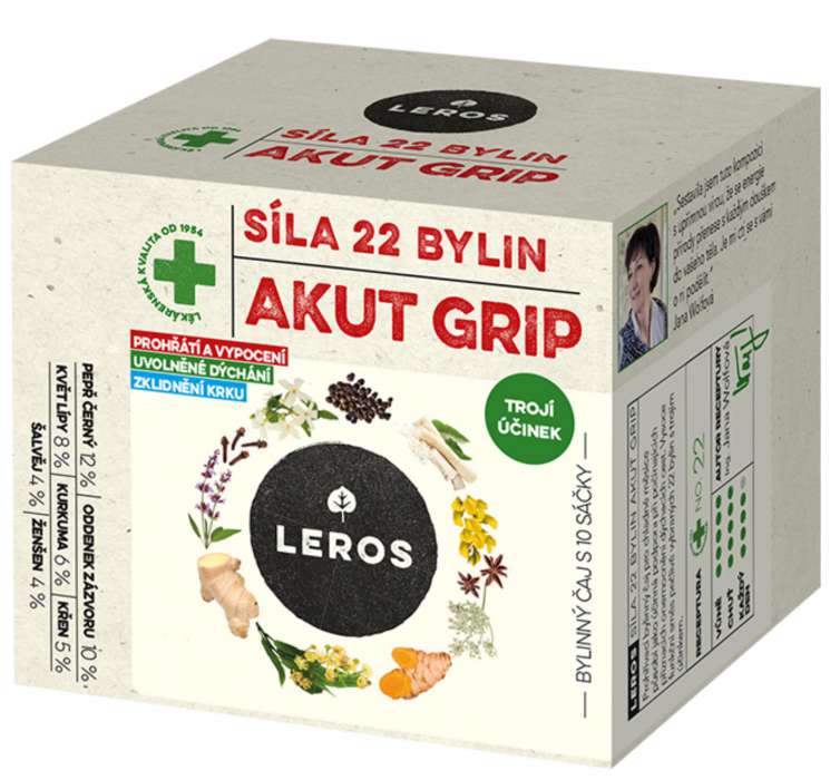 Bylinný čaj Leros - Síla 22 bylin, Akut Grip, 10x 2,5 g