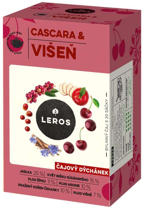 Bylinný čaj Leros - Čajový dýchánek, višeň a cascara, 20x 2 g