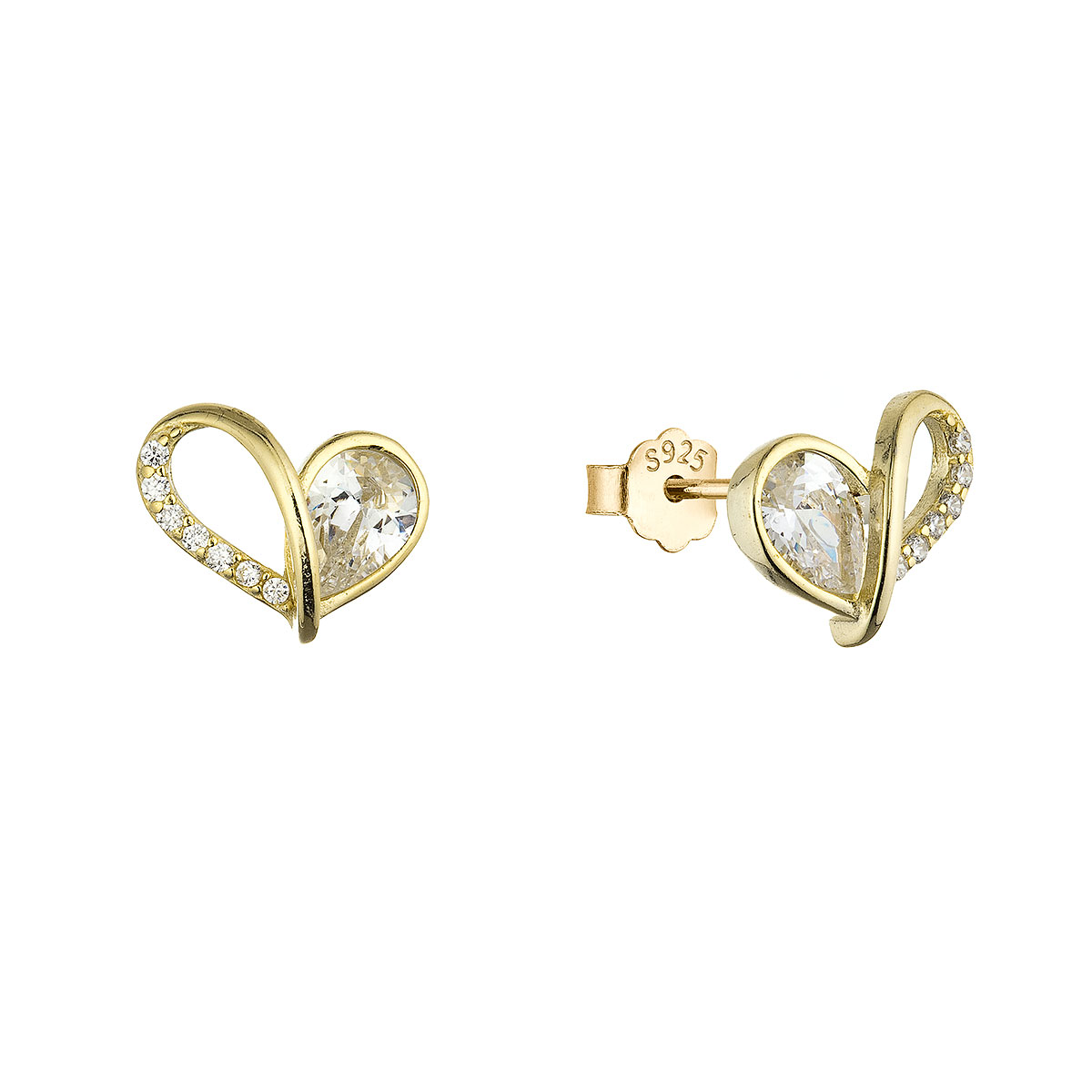 Pozlacené náušnice srdíčka se zirkony 11751.1