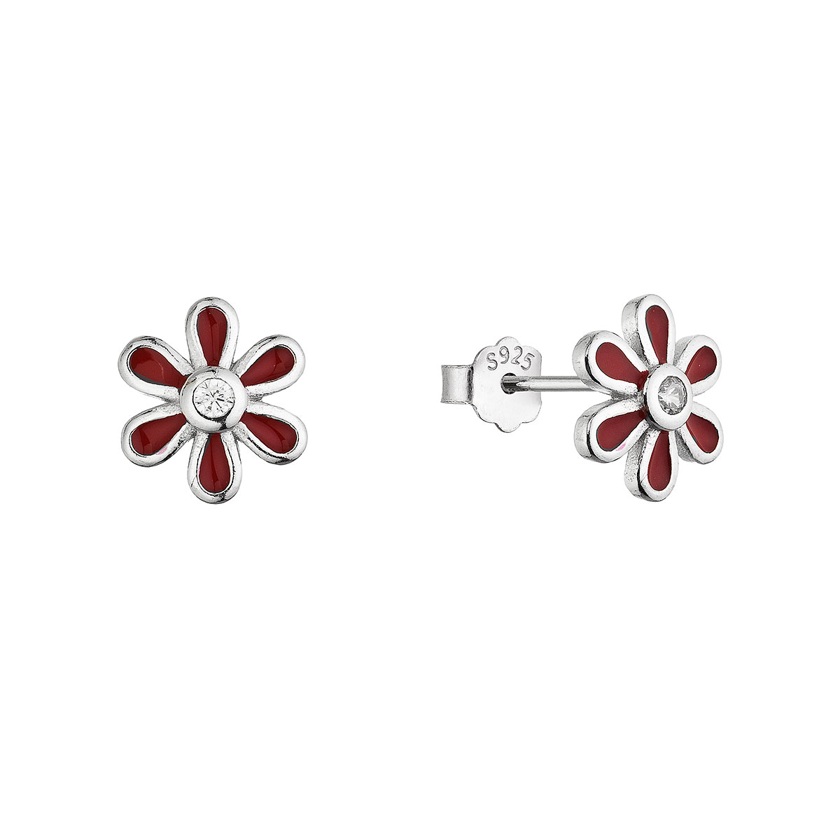 Stříbrné náušnice červené kytičky 11752.1