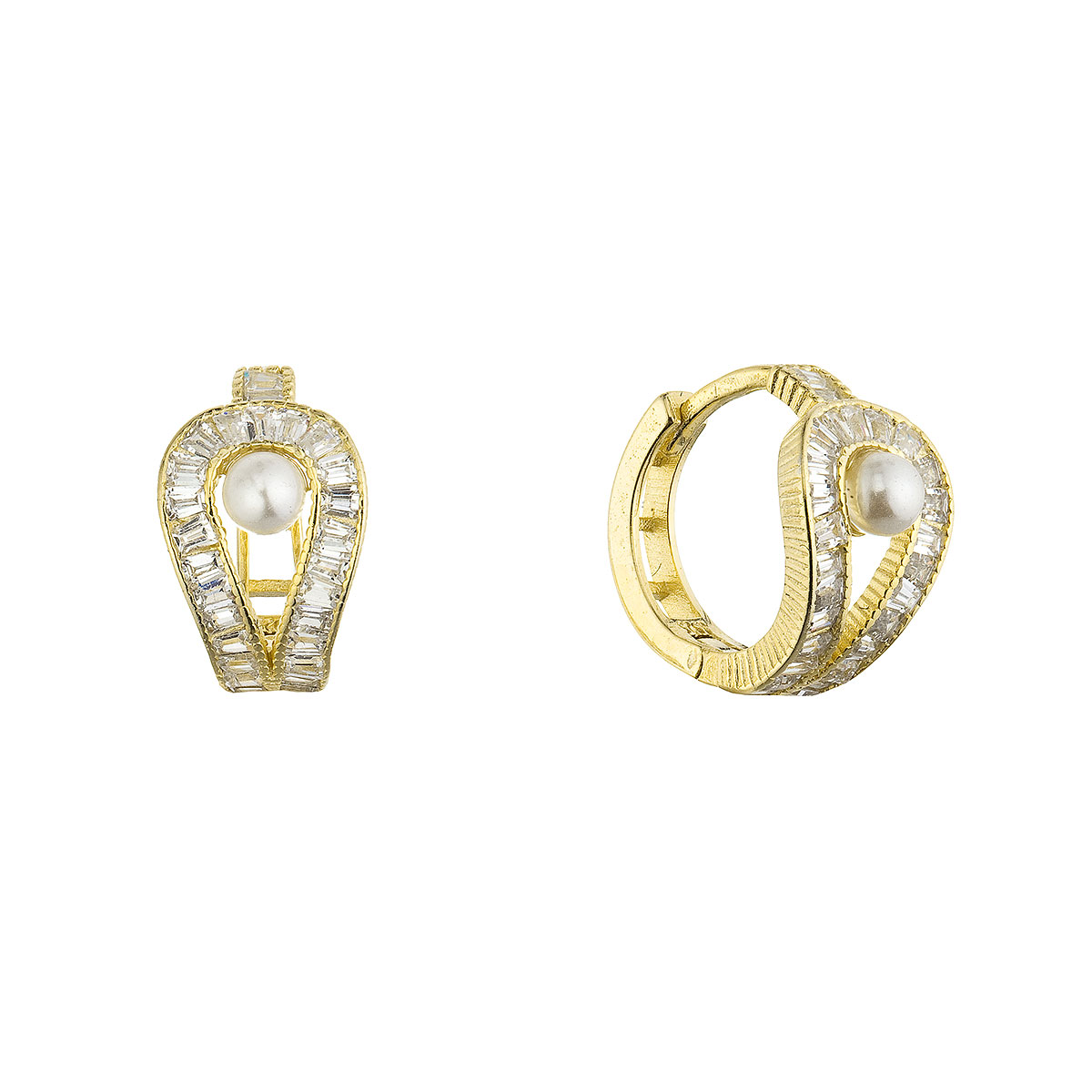 Pozlacené kroužky s perličkou a zirkony 11808.1