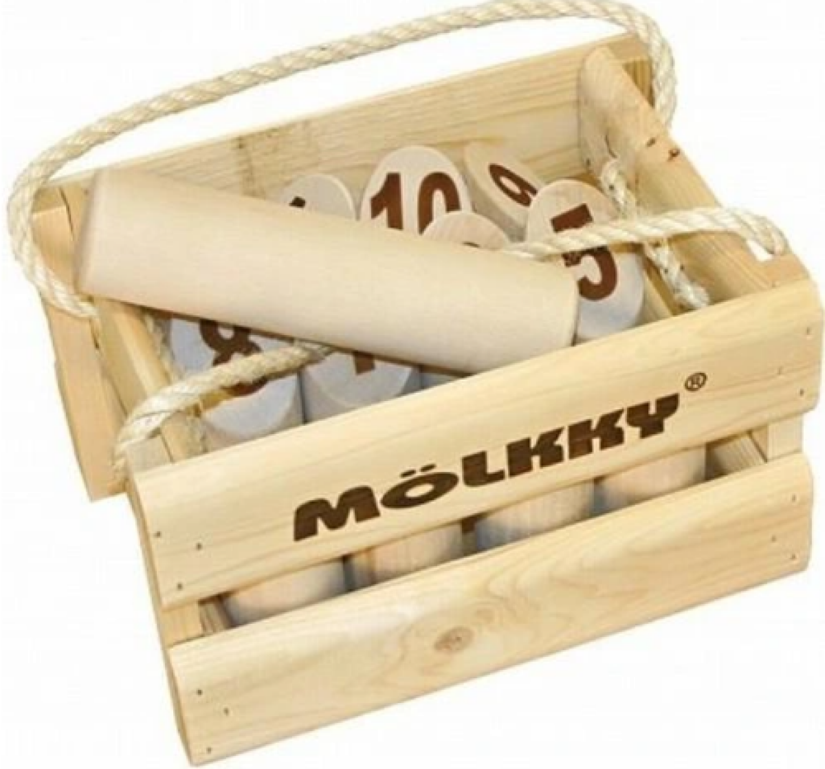 Dřevěná venkovní hra s kolíky v dřevěné bedýnce
