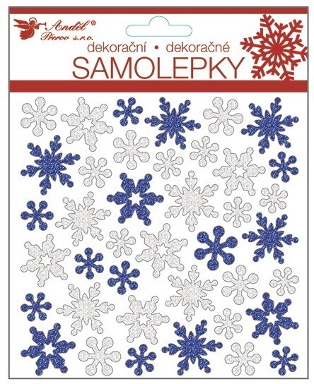 Samolepky z EVA pěny - vločky s glitry - 19 x 15 cm - 10374