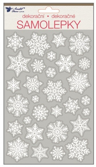 Bílé samolepky s glitry - vločky - 25 x 14 cm - 10362
