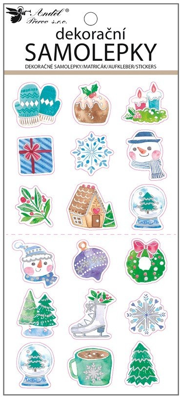Samolepky s glitrem - vánoční barevné - 13 x 34,5 cm - 10618
