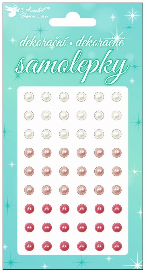 Dekorační samolepky - bílé a růžové perličky - 10 x 19 cm - 15003